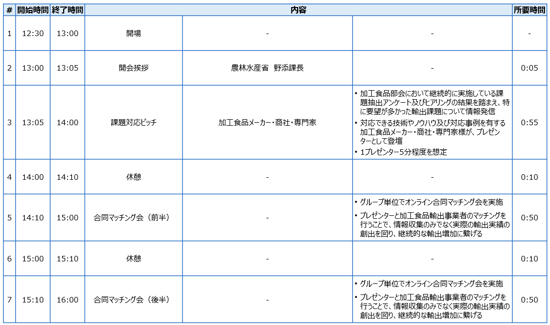 情報発信・マッチングを行う加工食品輸出課題対応ピッチを開催させていただくこととなりました。