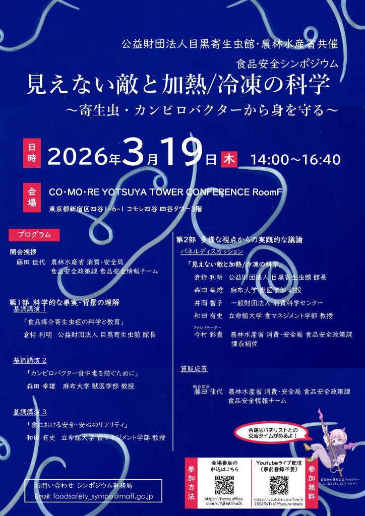 食品安全シンポジウム「見えない敵と加熱/冷凍の科学~寄生虫・カンピロバクターから身を守る~」