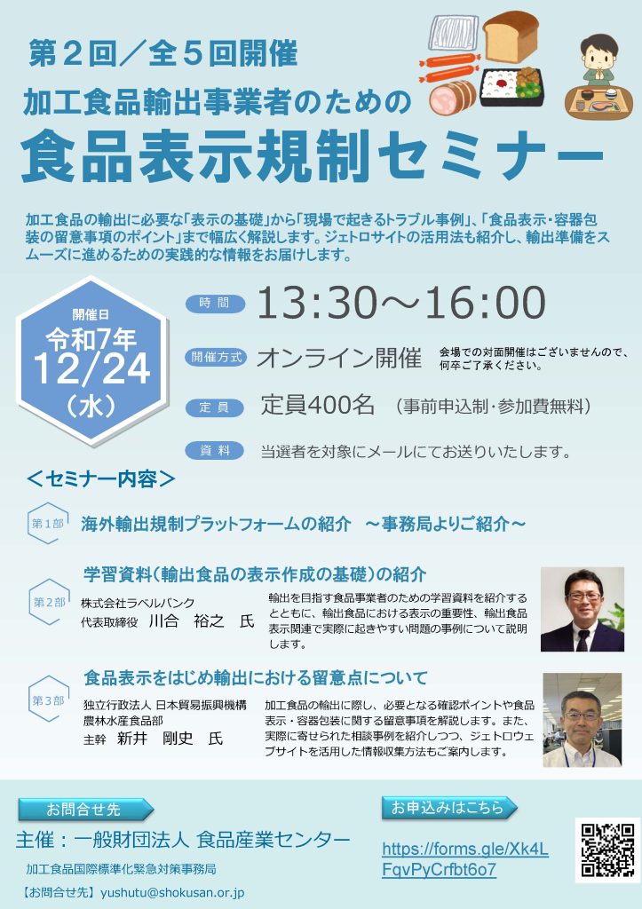 第2回 食品表示規制セミナー 2025年12月24日(水)13:30~16:00
