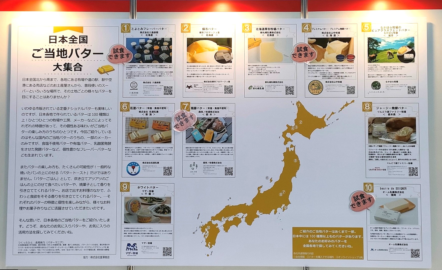 乳製品(チーズ・バター・ヨーグルト)のパネル展示とナチュラルチーズの試食もできます。