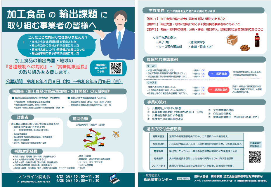 一般財団法人食品産業センターは、農林水産省の補助事業の一環として、2025年12月より全5回にわたり「令和7年度 輸出関連情報セミナー」を開催いたしました。